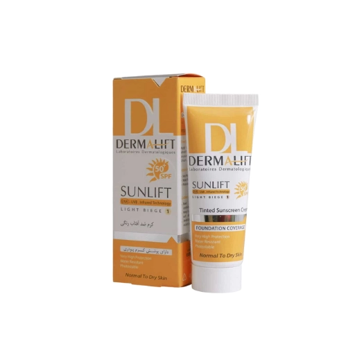 کرم ضد آفتاب SPF50 درمالیفت مناسب پوست خشک و معمولی شماره 1 (بژ روشن) 40ml