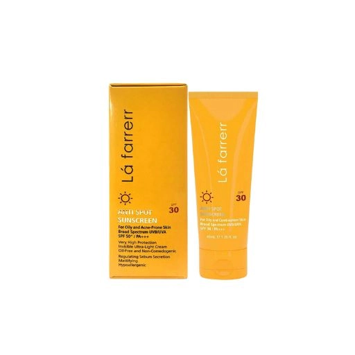 کرم ضد آفتاب لافارر برای پوست چرب و مستعد آکنه با SPF30، از پوست در برابر اشعههای UVA و UVB محافظت میکند. فرمولاسیون سبک و فاقد چربی این کرم به سرعت جذب پوست شده و مانع ایجاد جوش و حساسیت میشود. ترکیبات تخصصی ضد لک و کنترلکننده چربی، شامل عصاره شیرین بیان، بیربری، پاپایا، گواوا و سارمنتوزا ساکسیفراگا، تولید ملانین را کاهش داده و به کاهش و پیشگیری از لکهای پوستی کمک میکنند. همچنین عصاره چوب درخت انانتیا کلرانتا و زینک PCA، ترشح سبوم را کنترل کرده و از بروز آکنه و براقیت پوست جلوگیری میکند.